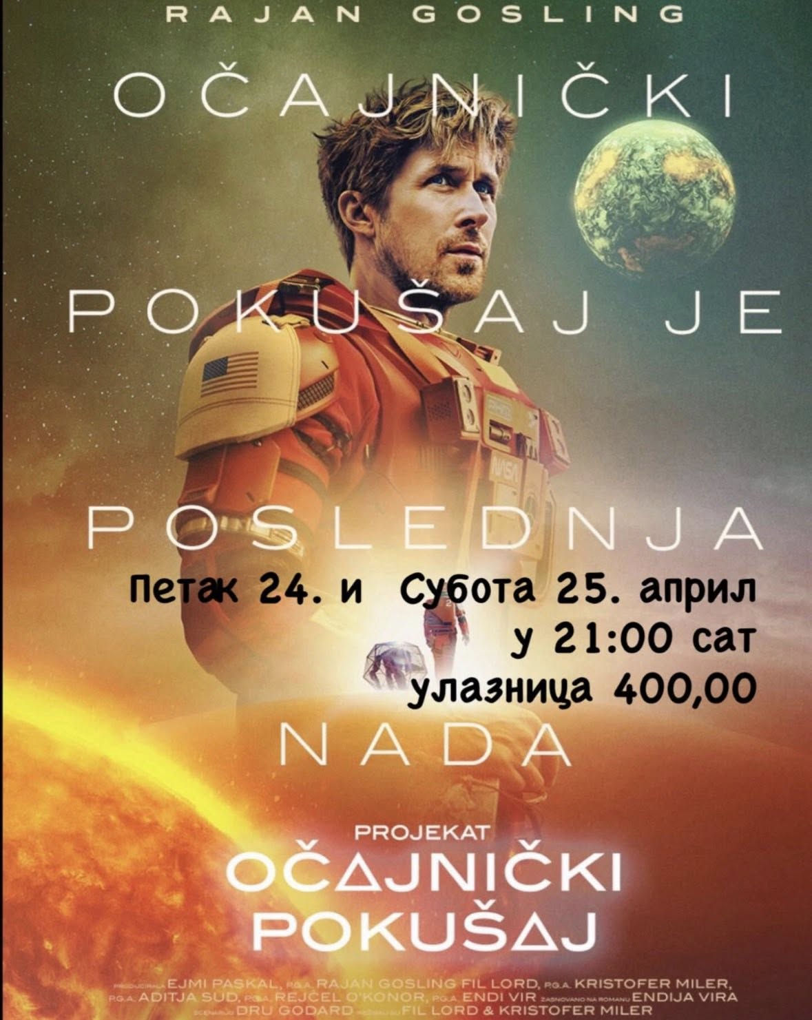 Film “Projektat: Očajnički Pokušaj” (NF) 21:00 400 RSD Naučna Fantastika