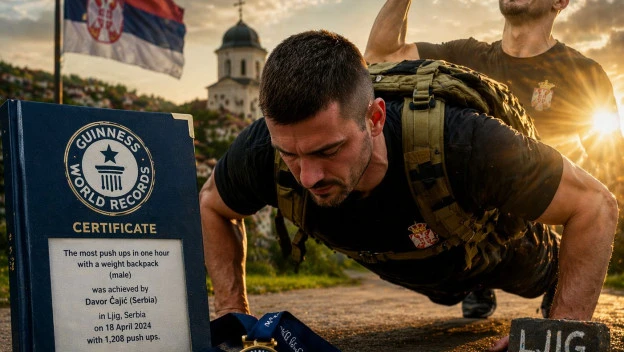 U svetu gde se rekordi mere u milisekundama i milimetrima, ponekad se pojavi priča koja prevazilazi same brojeve i dodiruje univerzalnu ljudsku težnju za prevazilaženjem. Takva je i priča Davora Ćajića iz Ljiga, mladića koji je rođen bez leve šake, a koji je upravo po treći put upisao svoje ime u prestižnu Ginisovu knjigu rekorda. Njegov najnoviji podvig – 1208 sklekova sa dodirom poda sa rancem teškim 11 kilograma – nije samo test fizičke izdržljivosti; to je moćna poruka o snazi volje i odluci da se život živi bez ograničenja koja drugi postavljaju.