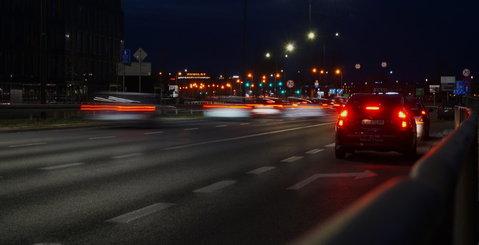 automobil koji vozi ulicom noću