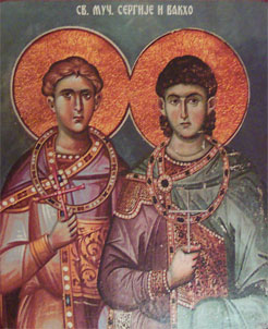 Sveti Sergije i Vakh bili su rimski dostojanstvenici na dvoru cara Maksimijana, savladara cara Dioklecijana, koji su postradali zbog hrišćanske vere i odbijanja da se poklone rimskim bogovima u Siriji. Njihov kult je ustanovljen upravo u Siriji, odakle se raširio po celom istoku, a kasnije i na zapad. Grad Rosafa u Siriji, gde je Sveti Sergije pogubljen, jedno vreme je nosio ime Sergiopolis i u šestom veku bio veliko hodočasničko mesto celog istoka.